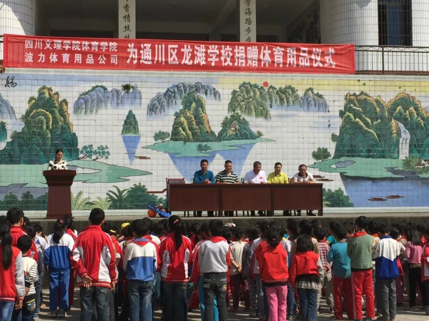 2015年10月15日上午,我院联手达州市波力体育用品有限公司,向通川区龙滩乡中心校捐赠了一批体育器材。