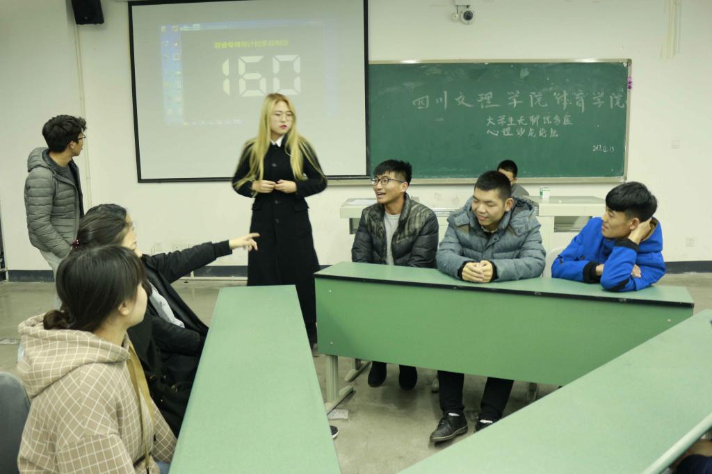 本次活动分为三个环节:首先,在案例分析环节,由赵文清同学通过案例分析阐释了无聊的生活状态可能会引发的一系列不良后果,并在现场通过填写调查问卷的方式,分析参与人员的生活现状。其次,在话题探讨环节,主持人提出了相关问题供大家探讨,心理委员们积极参与并发表自己的看法。最后,在心理游戏环节中,心理委员们积极参与,拉近了彼此之间的距离。