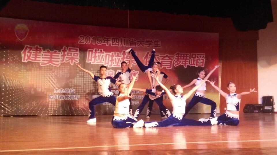 5月30日,2015年“四川大学生健美操、啦啦操、体育舞蹈锦标赛”在四川音乐学院隆重举行。我校6支代表队在佘涛书记和教练唐绪明老师的带领下参加了体育专业组和普通高校组的比赛,并在规定动作花球啦啦操项目中荣获第二名和第四名、在健美操规定套路项目中荣获第二名和两个第四名,拉丁伦巴套路第四名和团体总分第二名的好成绩。