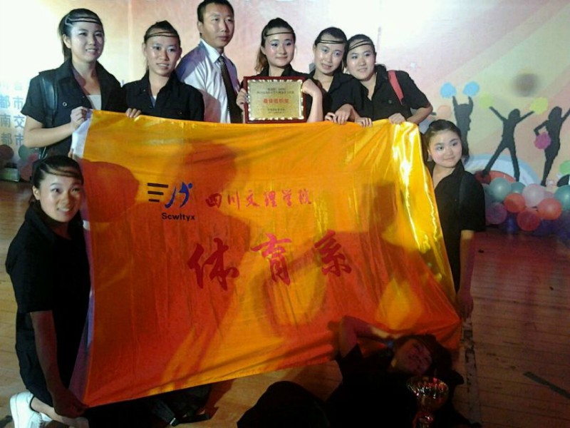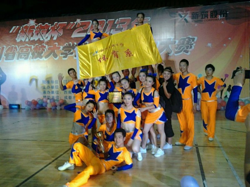 我校KY开元集团官网2011级健美操专业班学生分别参加了技巧啦啦操和街舞啦啦操比赛。比赛中,同学们舞步激情四射,动作整齐划一,赢得评委的一致好评。最终,在三级技巧啦啦操自编套路专业组和街舞啦啦操专业组中分别取得专业组第一的好成绩,并荣获大赛最佳组织奖;我校唐绪明教练被评为“新筑杯”2013年四川省高校大学生健康活力大赛最佳教练员,刘伟、冯秋红同学被评为本次大赛优秀运动员。
