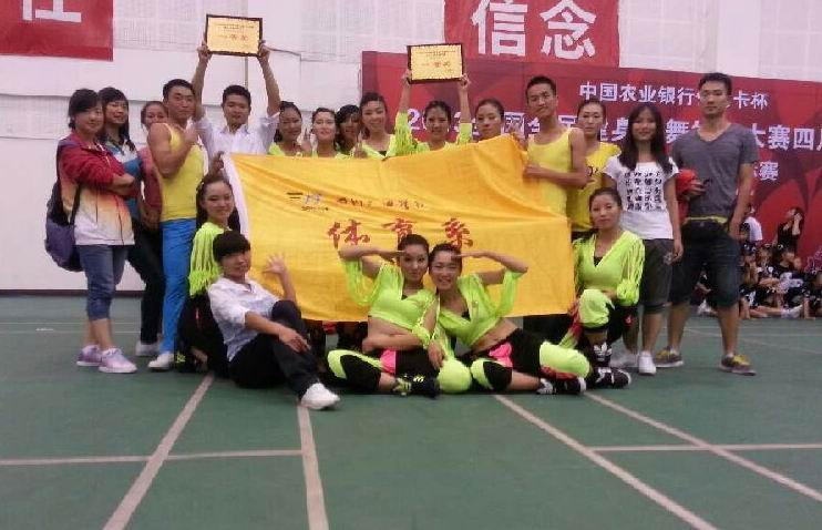 近日,2013年全国全民健身操舞大赛四川分站·暨四川省健美操锦标赛在四川省成都市十二中学举行。我院代表队分别参加了大众健美操四级和爵士舞的比赛。比赛在参赛队员的积极配合下取得了圆满的成功。最终,我院代表队以优异表现了荣获了大众锻炼标准等级动作一等奖,街舞规定动作一等奖及获得由中国健美操协会组委会颁发的“最佳完成奖”奖项。