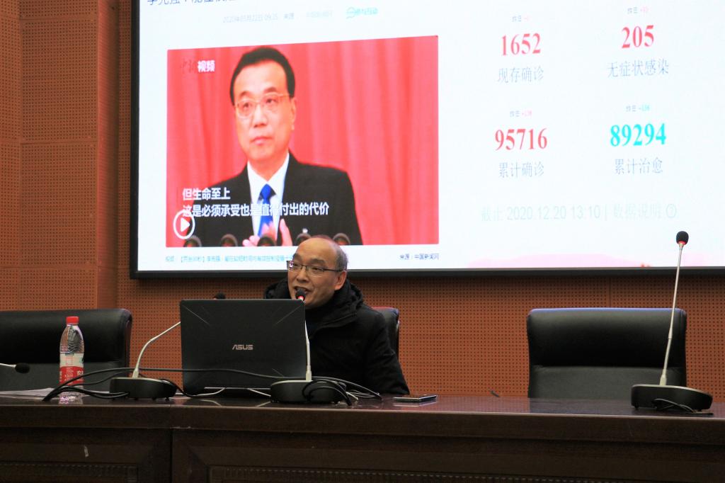 在题为“学习党的十九届五中全会精神,谱写新时代达州发展使命篇章”的讲座中,陈岗教授介绍了党的十九届五中全会召开的背景和“十三五”期间我国取得伟大成绩,讲解了“十四五”规划和2035年远景目标。结合国家的整体规划,他从区位优势、发展目标、发展举措等方面畅谈了新时期达州发展的使命任务和面临的机遇和挑战。罗大蒙副教授以“凝聚思想共识,激发奋进力量”为题为学院2020级同学们分析了中国目前面临的国际国内形势,解读了党的十九届五中全会审议通过的《中共中央关于制定国民经济和社会发展第十四个五年规划和二〇三五年远景目标的建议》。