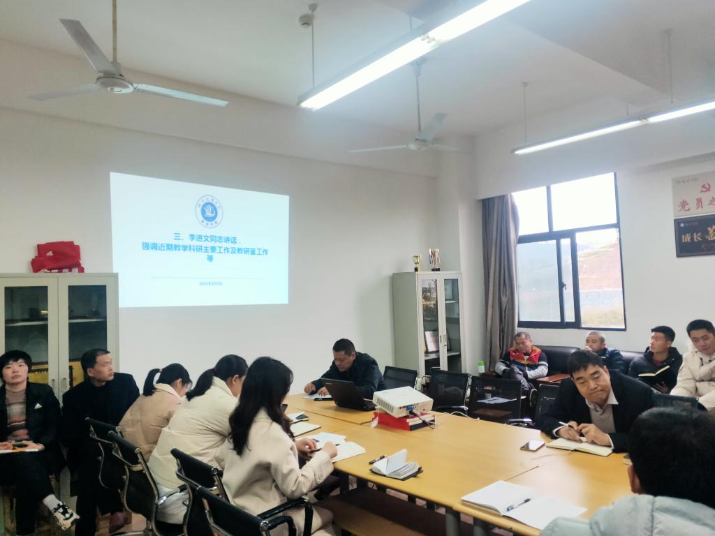 会议第三个议程:李进文,安排布置近期教学科研工作。他强调,一要严谨规范,高效做好教学工作;二要注重课堂规范;三要提高学生学习的主动性与积极性;四要注重培养学生的师范技能;五要积极申报科研项目;六要整合资源,提高教学质量。同时要积极主动的做好硕士点建设前期准备工作,加快师范认证脚步。