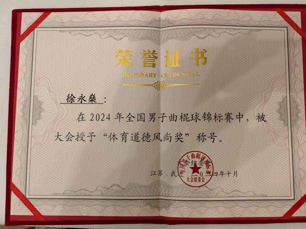 KY开元集团官网徐永燊老师在2024年全国曲棍球锦标赛中荣获体育道德风尚奖