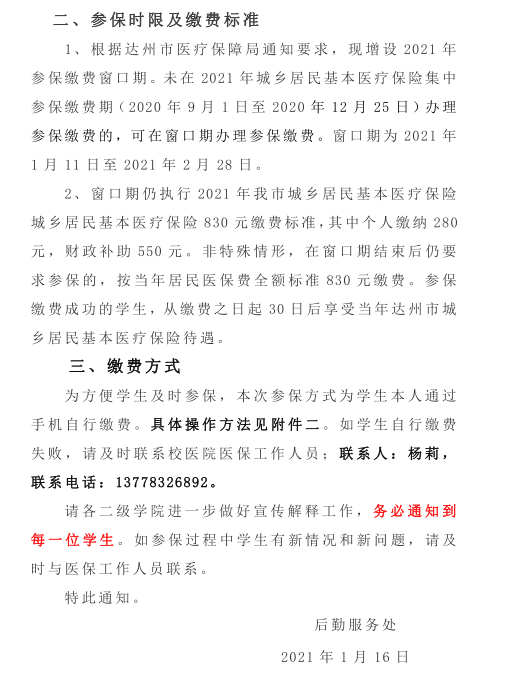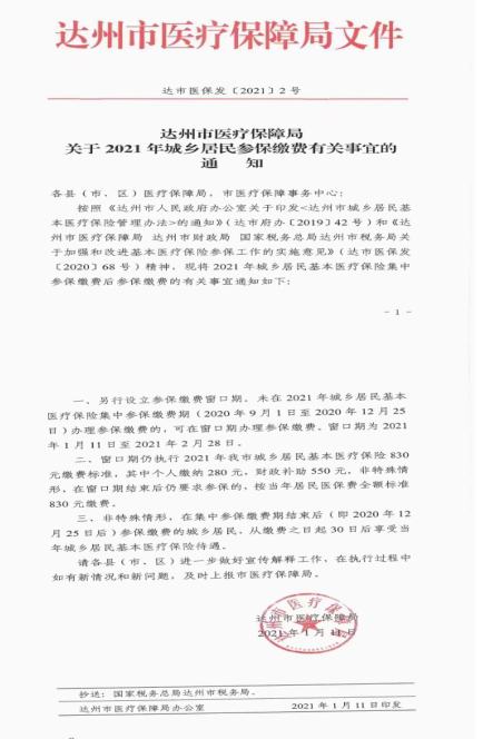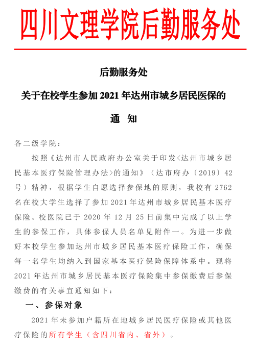 ​​关于在校学生参加2021年达州市城乡居民医保的通知