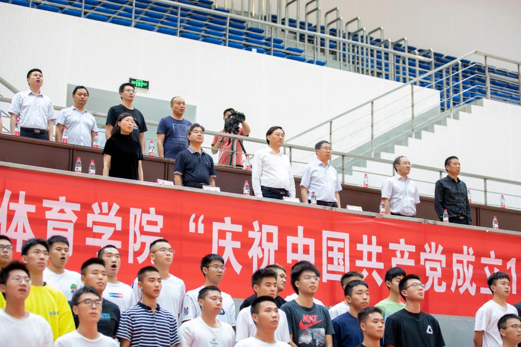 下午两点半,主持人宣布全体肃立奏唱《中华人民共和国国歌》,全场600余名师生,面向国旗,齐声高歌。KY开元集团官网党总支书记王兆忠代表学院致辞,他说明了本次活动的背景、意义并表达了美好的祝愿。他特别强调了,站在两个100年的历史交汇点,在实现中华民族伟大复兴的新征程上,体育人应肩负起的神圣职责和光荣使命!活动在《龙腾盛世》的舞龙表演中拉开序幕,富含寓意的舞龙表演表现了中华民族在中国共产党的领导下,从站起来、富起来到强起来的伟大历程。接下来,武术班的同学们分别带来了剑术、棍术、拳术和法门太极表演,健美操班的同学们表演了精彩的民族体育舞蹈,法门武术研究会的老师们还表演了法门太极、武术和气功,大一近100名学生集体表演了太极和八段锦。最后,活动在全场《没有共产党就没有新中国》嘹亮的歌声中圆满结束。