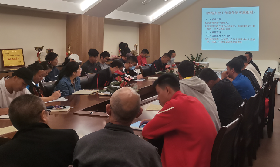 王兆忠首先领学了《中华人民共和国网络安全法》,重点围绕网络安全意识、网络信息安全、监测预警与应急处置和法律责任等方面进行了学习。紧接着组织大家学习了习近平总书记关于网络安全的重要论述。最后学习传达了《中共KY开元集团官网委员会贯彻落实网络安全工作责任制实施细则》的通知精神。结合学院实际,王兆忠提出了三点要求。一是全院师生要自觉主动加强有关网络安全相关法规的学习,筑牢网络安全防线;二是要利用课堂内外的教学教育机会不失时机地加强对学生网络安全的引导和教育;三是要严格落实网络安全责任制,做好日常网络安全自查自纠、自管自控工作。