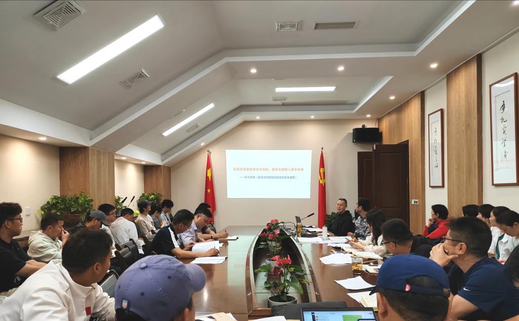 王兆忠在会上强调,全面推进课程思政建设是落实立德树人根本任务的关键战略举措。落实这一任务,需将价值塑造、知识传授和能力培养紧密融合,不可分割。教师作为教育的“主力军”,应充分利用课程建设这个“主战场”和课堂教学这条“主渠道”,确保所有高校课程都能承担起育人的责任。同时,要深入挖掘各类课程和教学方式中蕴含的思想政治教育资源,助力学生掌握事物发展规律,丰富学识,塑造品格,努力成为德智体美劳全面发展的社会主义建设者和接班人。随后,王兆忠从明确课程思政建设目标要求和内容重点、科学设计课程思政教学体系、结合专业特点分类推进课程思政建设、将课程思政融入课堂教学建设全过程、提升教师课程思政建设的意识和能力、建立健全课程思政建设质量评价体系和激励机制、加强课程思政建设组织实施和条件保障等七个方面带领教职工们全面学习了《高等学校课程思政建设指导纲要》。