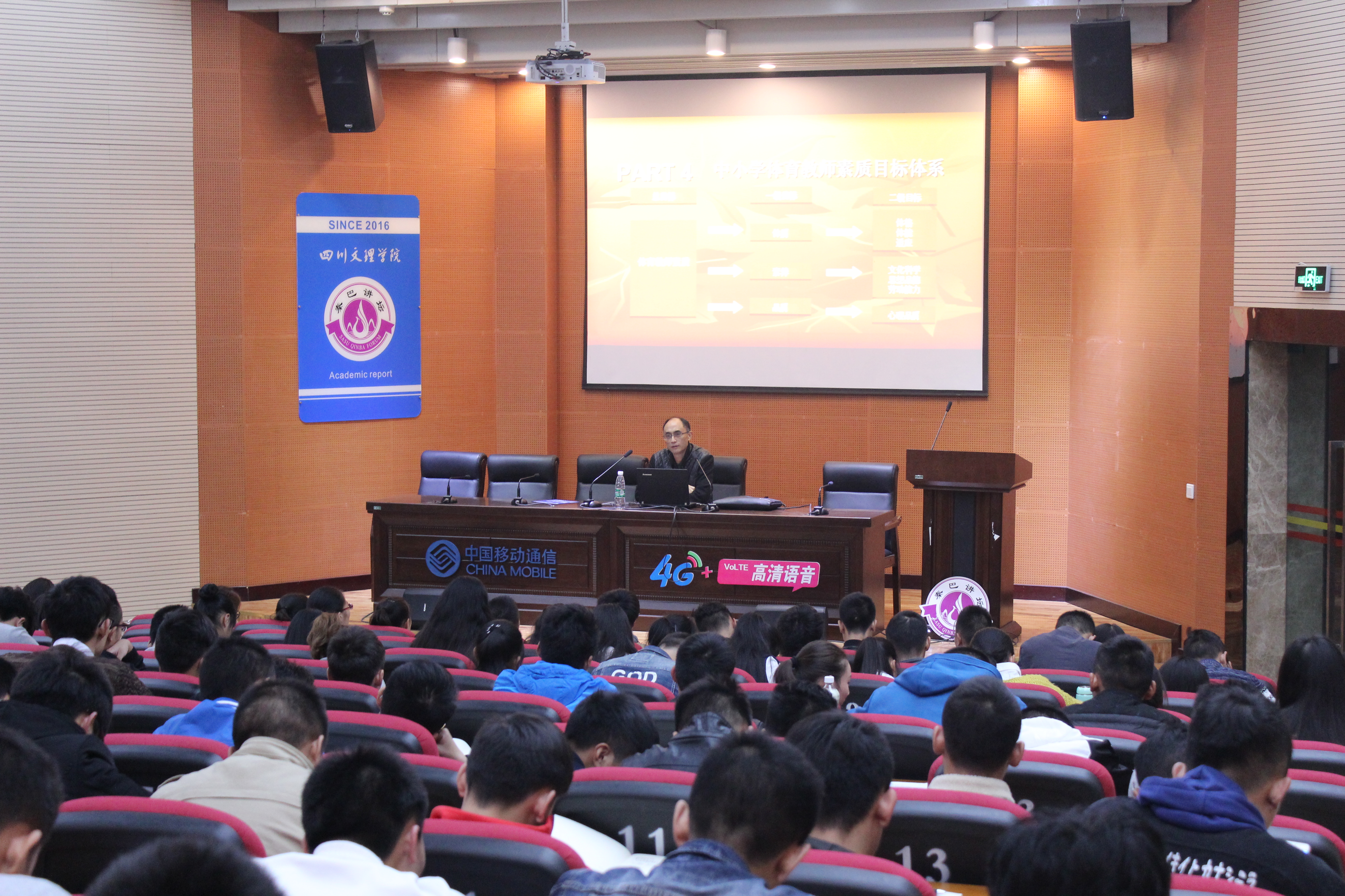 11 2 晚,我校KY开元集团官网陈碧述教授在莲湖校区学术报告厅B厅为体育专业学生作题为“中小学体育教师素质结构与能力的培养”的讲座。讲座由KY开元集团官网党总支书记佘涛主持。