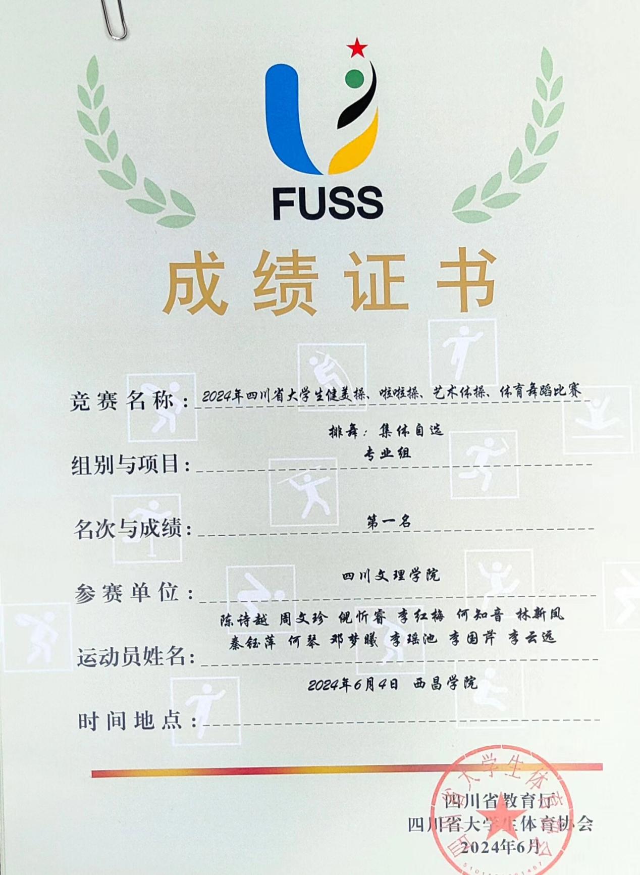 我校在2024年四川省大学生健美操、啦啦操、艺术体操、体育舞蹈大赛中荣获佳绩