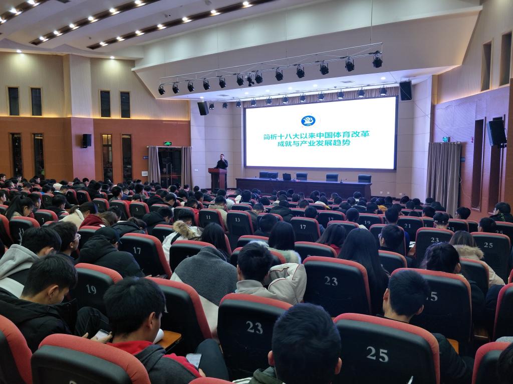 KY开元集团官网李进文老师于1212日晚19点在学术交流报告厅A厅举办了主题为“简析十八大以来中国体育改革成就与产业发展趋势”的学术报告。本次学术报告由KY开元集团官网院长佘涛教授主持,KY开元集团官网500余名师生参加。