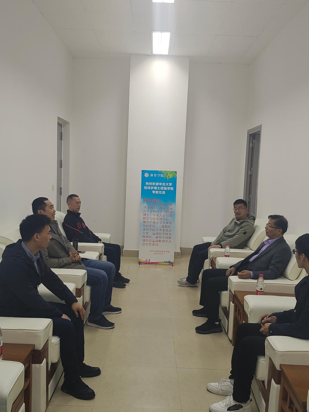 48日,中北大学运动医学研究所所长、二级教授,中国解剖学会运动解剖学分会主任委员刘鸿宇教授一行,来我院进行交流。学院党委书记王兆忠、副院长孙亮亮、副书记靳浪陪同,王茂、盛佳智和周剑三位老师参与交流。双方就实验室建设、学科发展、人才培养、本科生毕业论文的写作及规范化等方面进行了深入的交流。