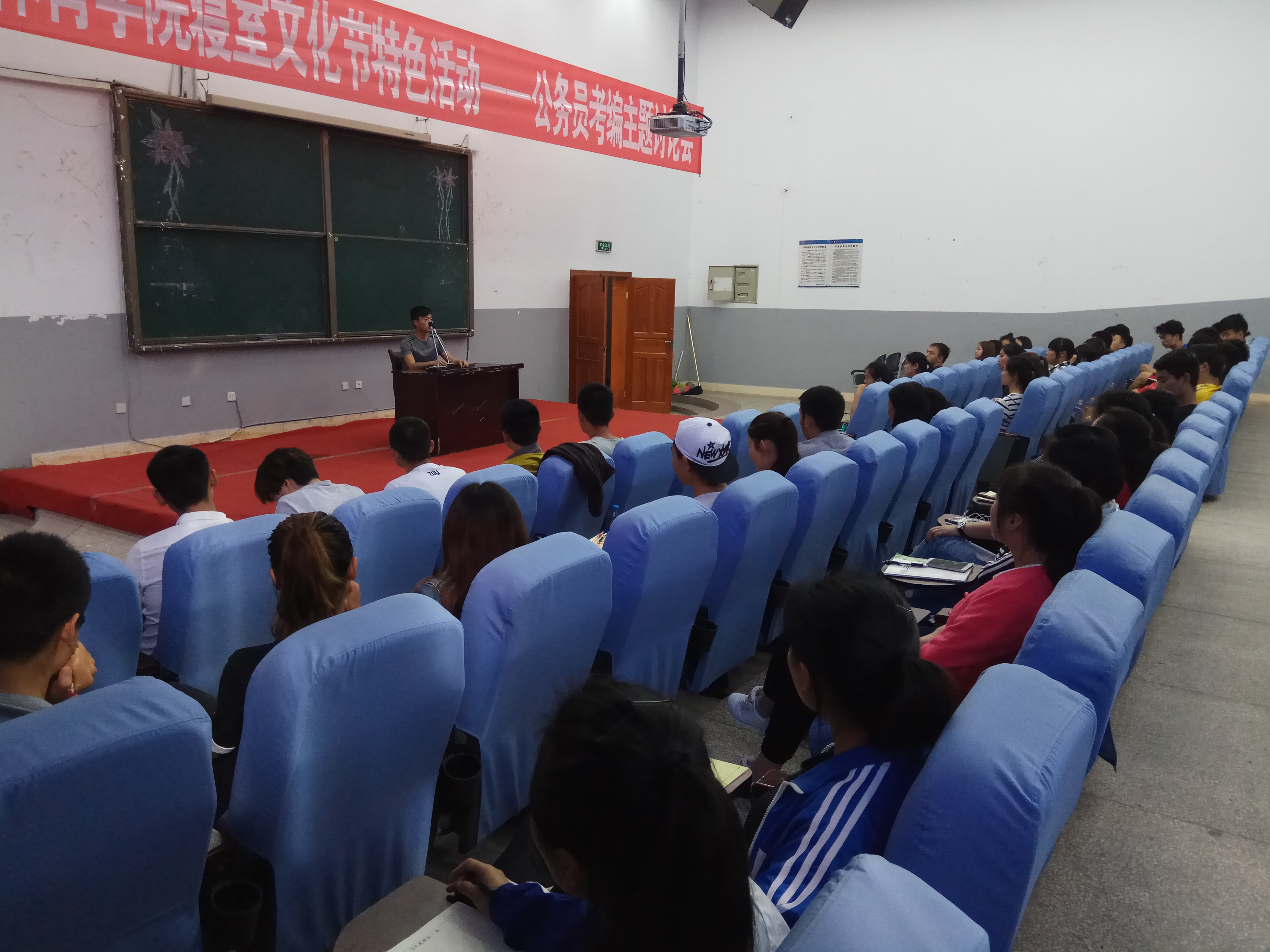 本次活动是学院本届寝室文化节系列活动之一,邀请了学院在公招考试中取得较好成绩的毕业班学生向学弟学妹传授考试经验,参会同学们表示对复习思路有了清晰的认识,收获很大