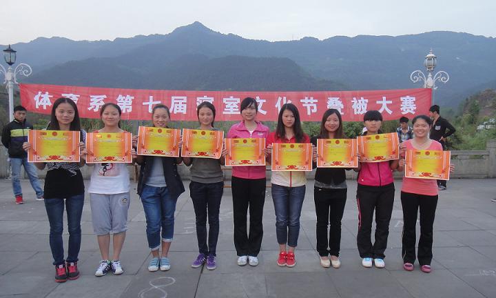 2013年4月16日下午,体育系一年一度的寝室文化节叠被大赛在莲湖校区青春广场拉开帷幕。本次活动由学生会劳生部部长李奎同学组织,各部门的干事协助本次活动开展。