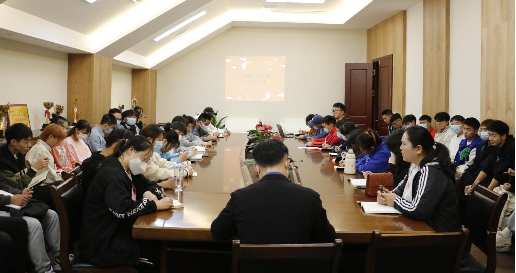 202210612:40,KY开元集团官网团总支学生会在体育馆117会议室召开本学期第一次干部例会。KY开元集团官网党总支副书记靳浪、辅导员闫青、石姣娜,团总支学生会所有学生干部参加会议。会议由石姣娜主持。