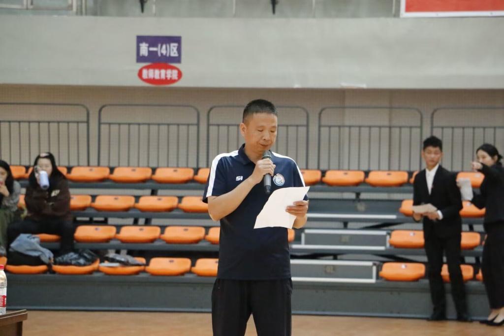 随着音乐响起,武术专项班的同学们在篮球场上用一套套行如流水的武术动作,为开幕式暖场。随后,院长佘涛致开幕辞。他提到,为了认真落实习近平总书记把“三大球”搞上去的指示,KY开元集团官网秉承教会、勤练、常赛的宗旨举办2022年秋季联赛,旨在丰富校园文化生活,提高学生的运动技术水平,健全学生人格,锤炼学生意志,培养学生吃苦耐劳、坚韧不拔的精神。他提出三点希望:一是希望同学们能够认真对待比赛,补齐短板、强化弱项、强固底板、展示优势;二是希望全体学生裁判认真执裁,做到公平公正,提升执裁水平;三是希望参赛运动员文明参赛,观众文明观赛,赛出友谊,赛出水平。裁判员代表、运动员代表分别进行了宣誓。最后,党总支书记王兆忠宣布KY开元集团官网2022年秋季联赛开幕。