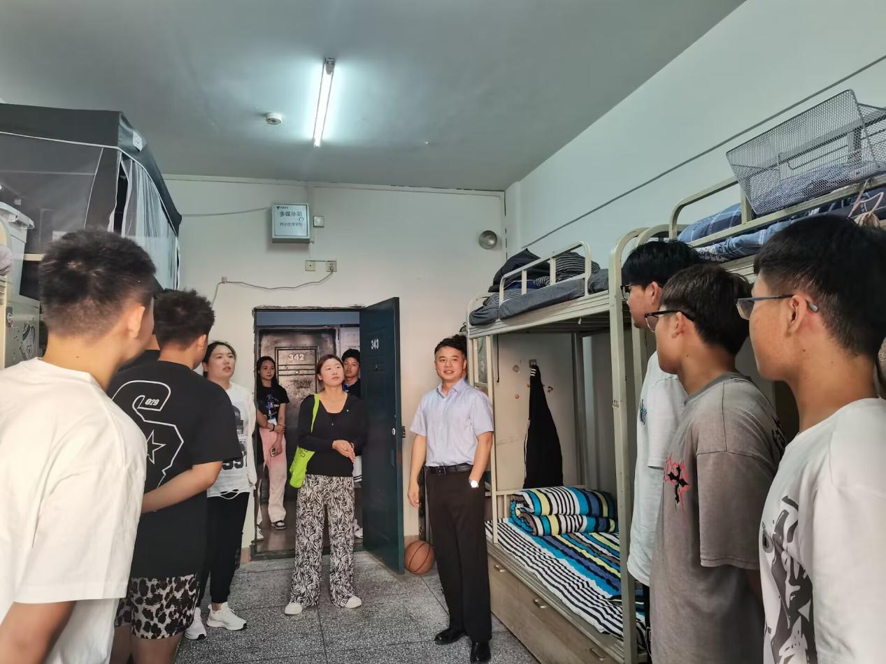 913日下午,学院党政领导、专兼职辅导员、教师代表及部分学生干部对学院2023级新生寝室进行了走访,老师们与新生进行了热情地沟通交流,鼓励同学们要积极适应大学生活,尽快完成身份转变,要制定好学习计划,积极向上、努力学习,为自己的大学生活添彩,为自己的人生润色。同时对寝室管理及卫生环境等做出了相关要求。