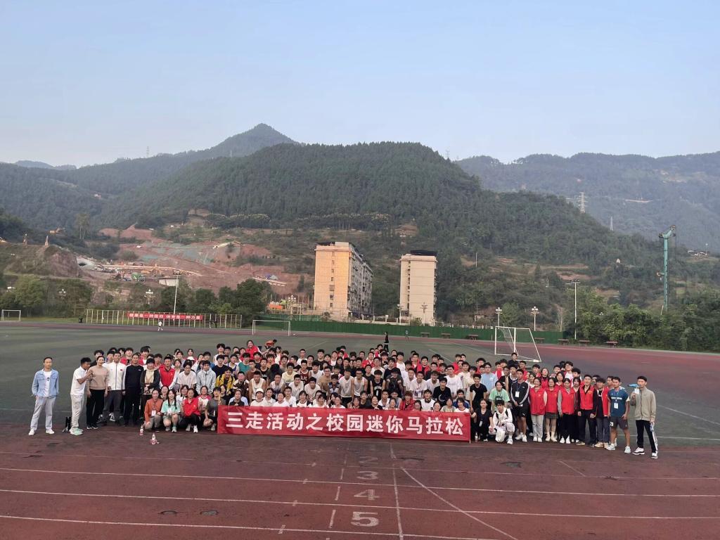 20231026—1115日,为青春跑动,为梦想喝彩跑步项目开展了荧光夜跑和校园5公里迷你马拉松比赛。随着夜幕降临,同学们兴致激昂,手持荧光棒,通过keep软件记录里程,在月光、灯光与荧光的交相辉映下,挥洒汗水,形成一道青春靓丽的风景线。校园迷你马拉松比赛在校园道路展开,沿途设置3个补给站、流动医疗点等,每50米安排志愿者为参赛选手提供全面的服务。参赛选手斗志昂扬、奋力奔跑,一个个都争先恐后地向极限发起挑战,途中师生为参赛选手顽强拼搏的精神纷纷呐喊助威,直到最后一名选手结束。