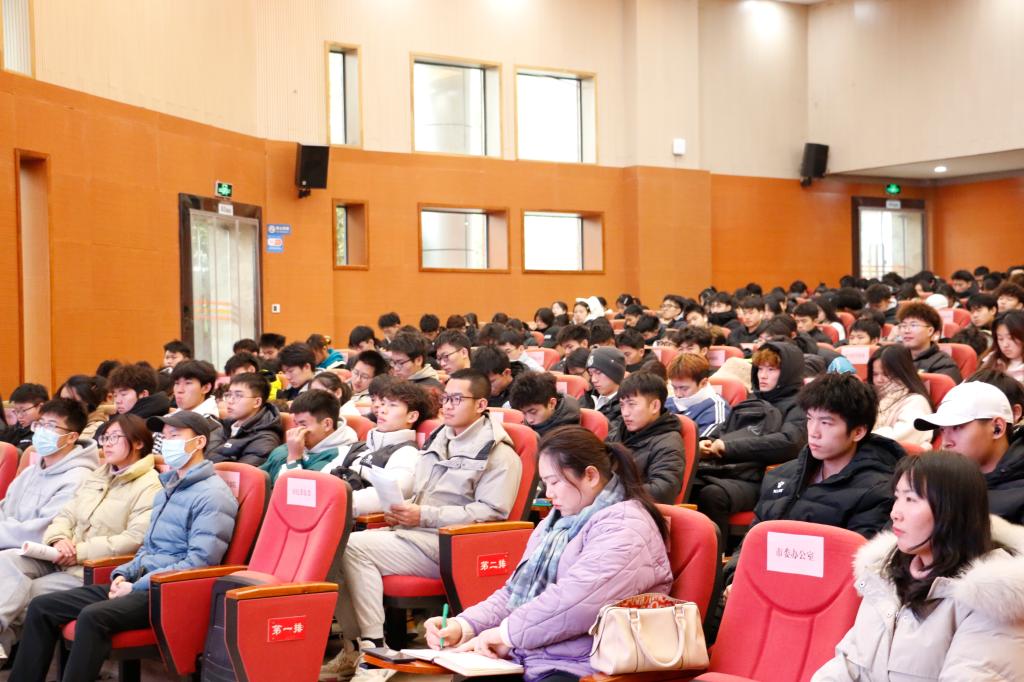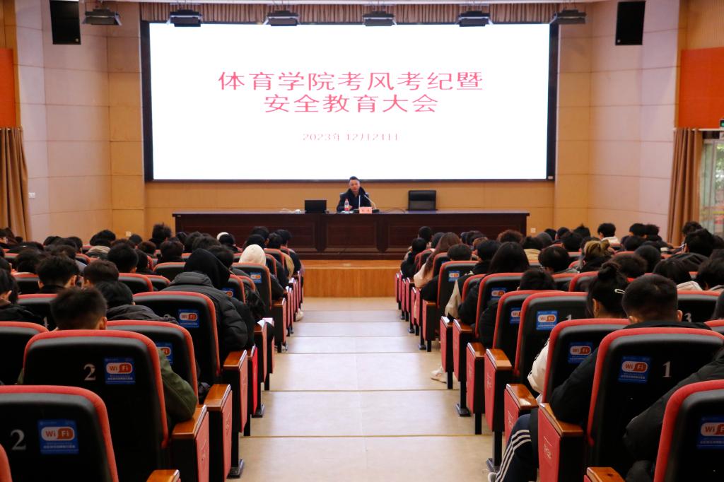 20231221日中午12:40,KY开元集团官网在学术报告A厅开展了考风考纪暨安全教育大会,学院党委副书记靳浪、学工办主任祝利平、专兼职辅导员石姣娜、宋林董、刘方芳、李波及2023级、2022级全体学生参与此次大会,党委副书记靳浪担任主讲。