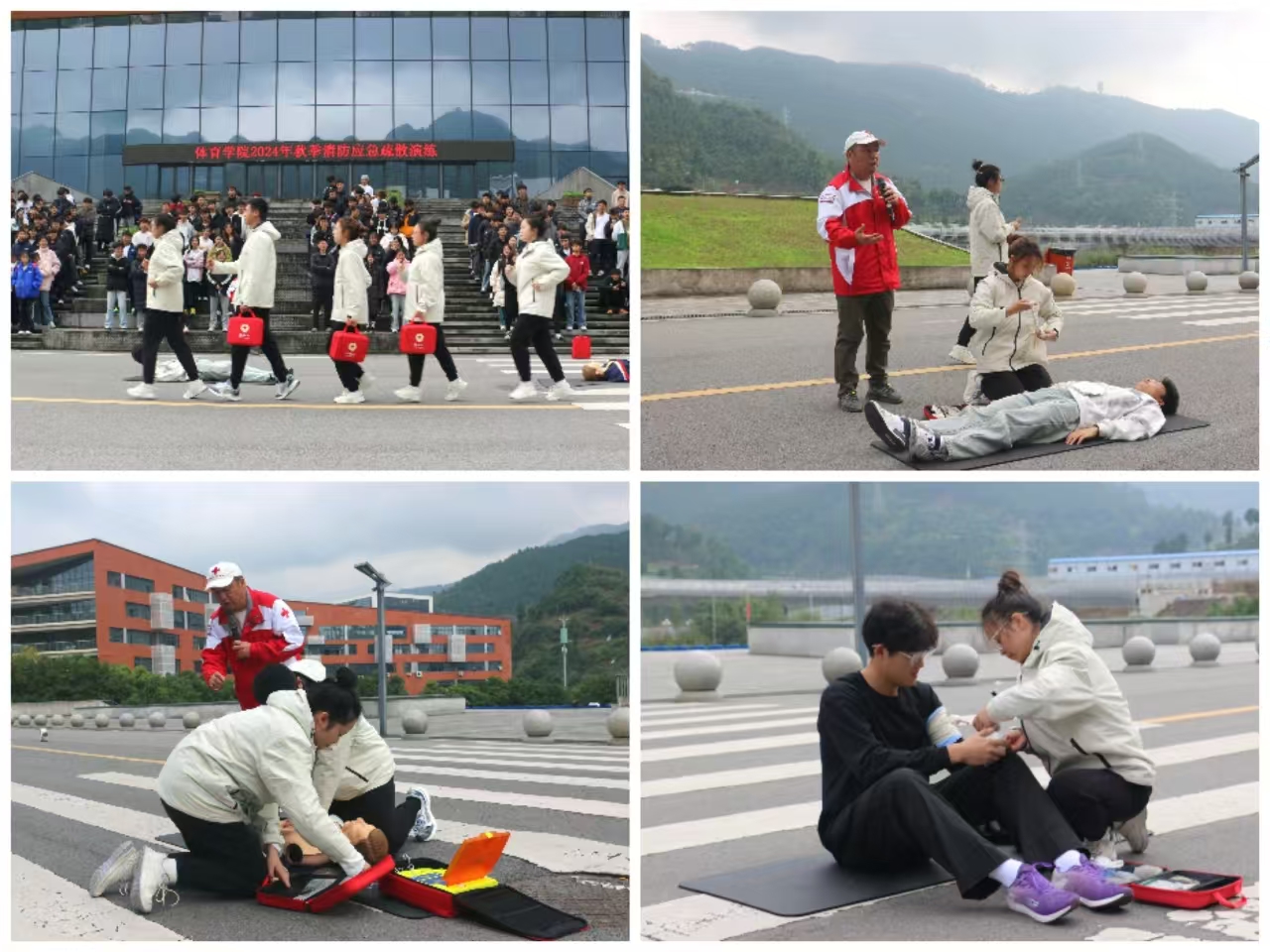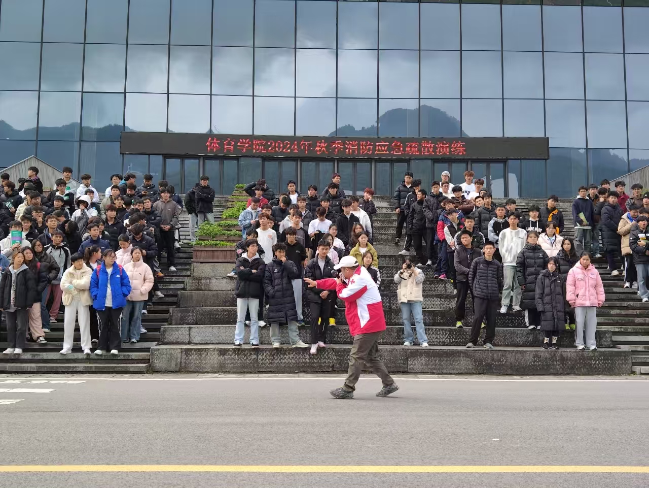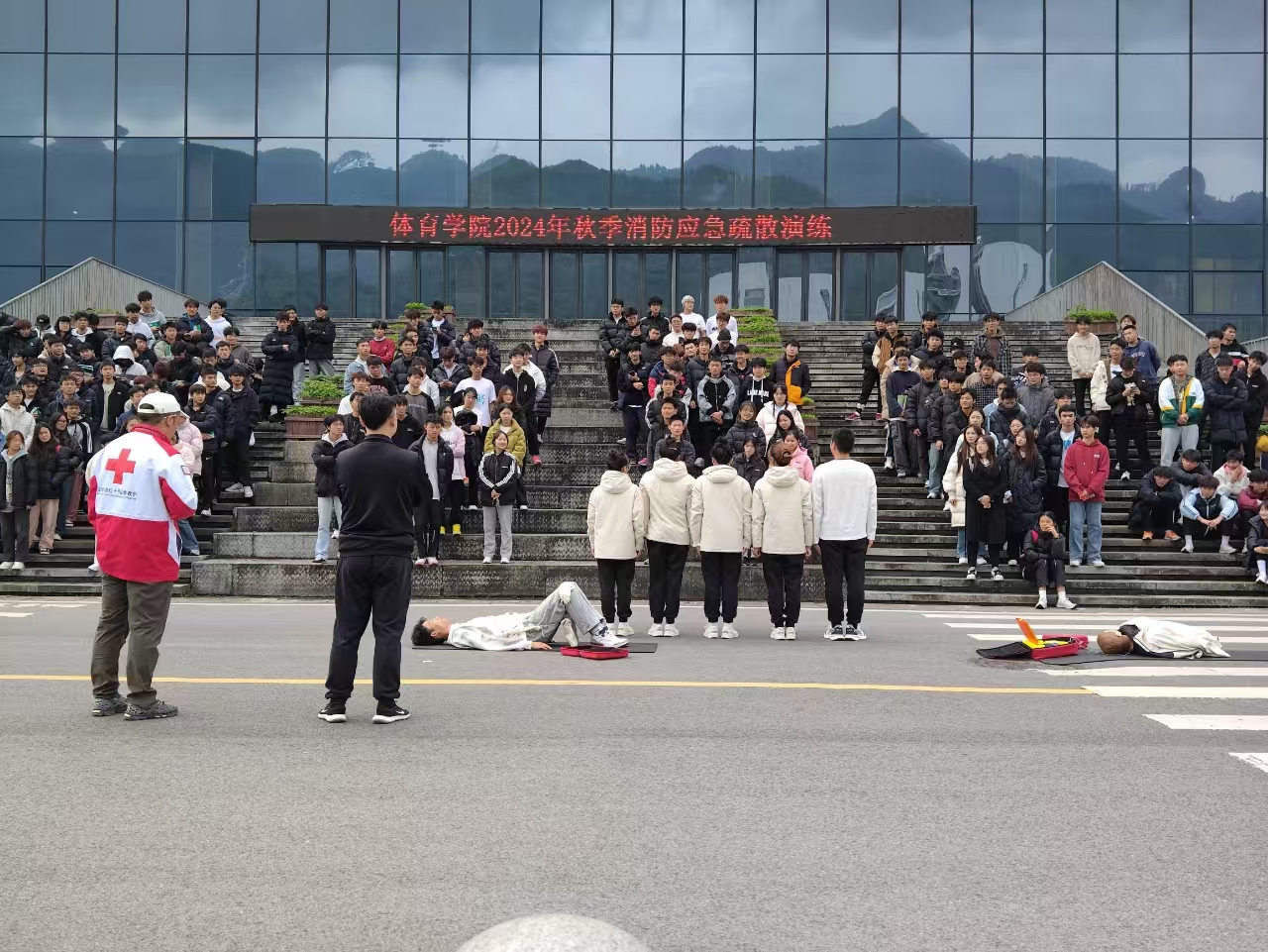 2024112212点整,KY开元集团官网于体育馆开展了消防应急疏散演练。学院党委副书记靳浪、辅导员邓超、李波、专任教师宋京林、7 名红十字救护员及2024 级全体学生参与此次活动。