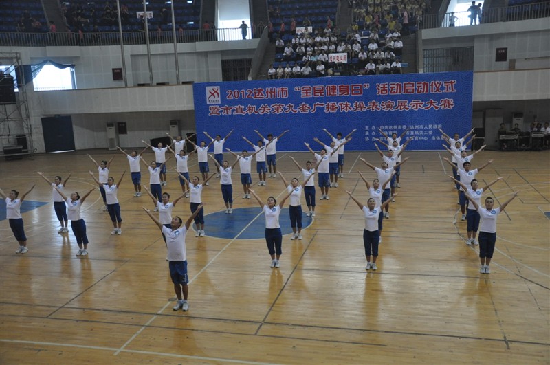 为了更好的营造全民健身活动氛围,提高广大市民的健身理念,努力建设幸福达州,8月8日上午,2012达州市“全民健身日”活动启动仪式暨市机关第九套广播体操表演展示大赛在市体育馆隆重举行,本次比赛由中共达州市委,达州市人民政府主办。KY开元集团官网党委书记李万斌教授受邀出席了活动的启动仪式并观看了比赛。体育系董立主任,系党总支佘涛副书记(主持全面工作),系党总支张皓副书记,系辅导员及学院的教师代表一行观看了全程比赛。